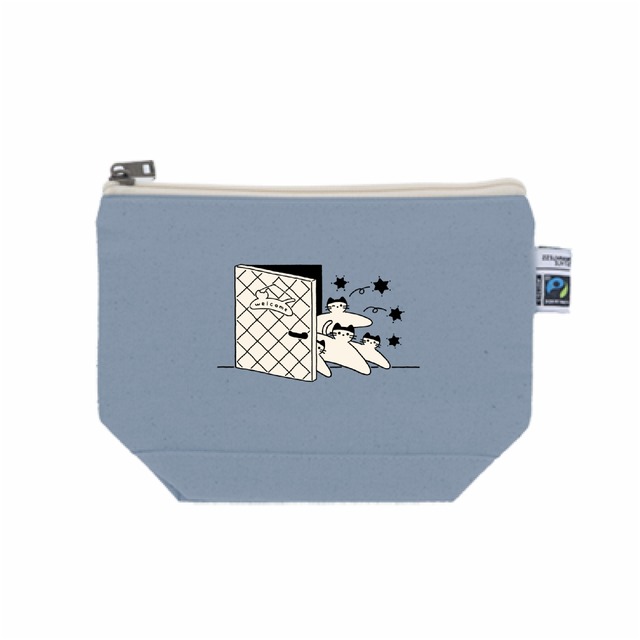 フェアトレードコットンキャンバスデイリーポーチ スモークブルー(welcome)